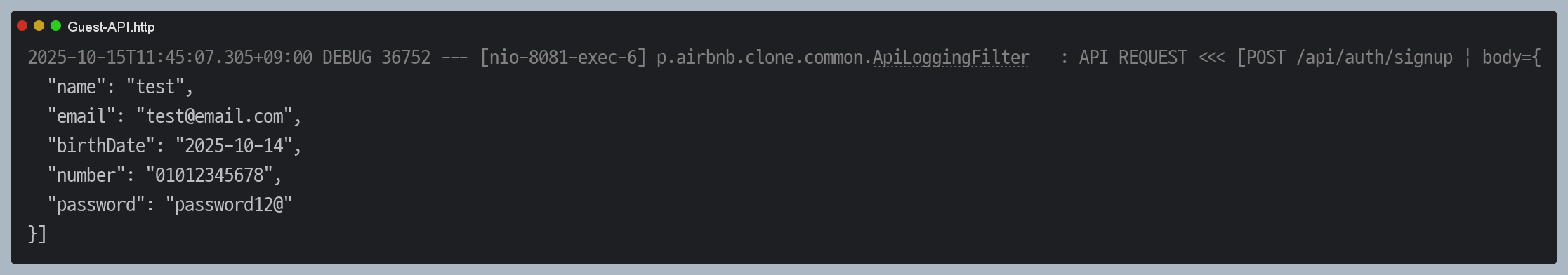 드디어 RequestBody를 잘 출력하는 것을 확인했습니다. 컨트롤러 요청에도 문제 없었습니다. 줄바꿈까지 잘 처리되서 보기 좋은 것 같습니다.