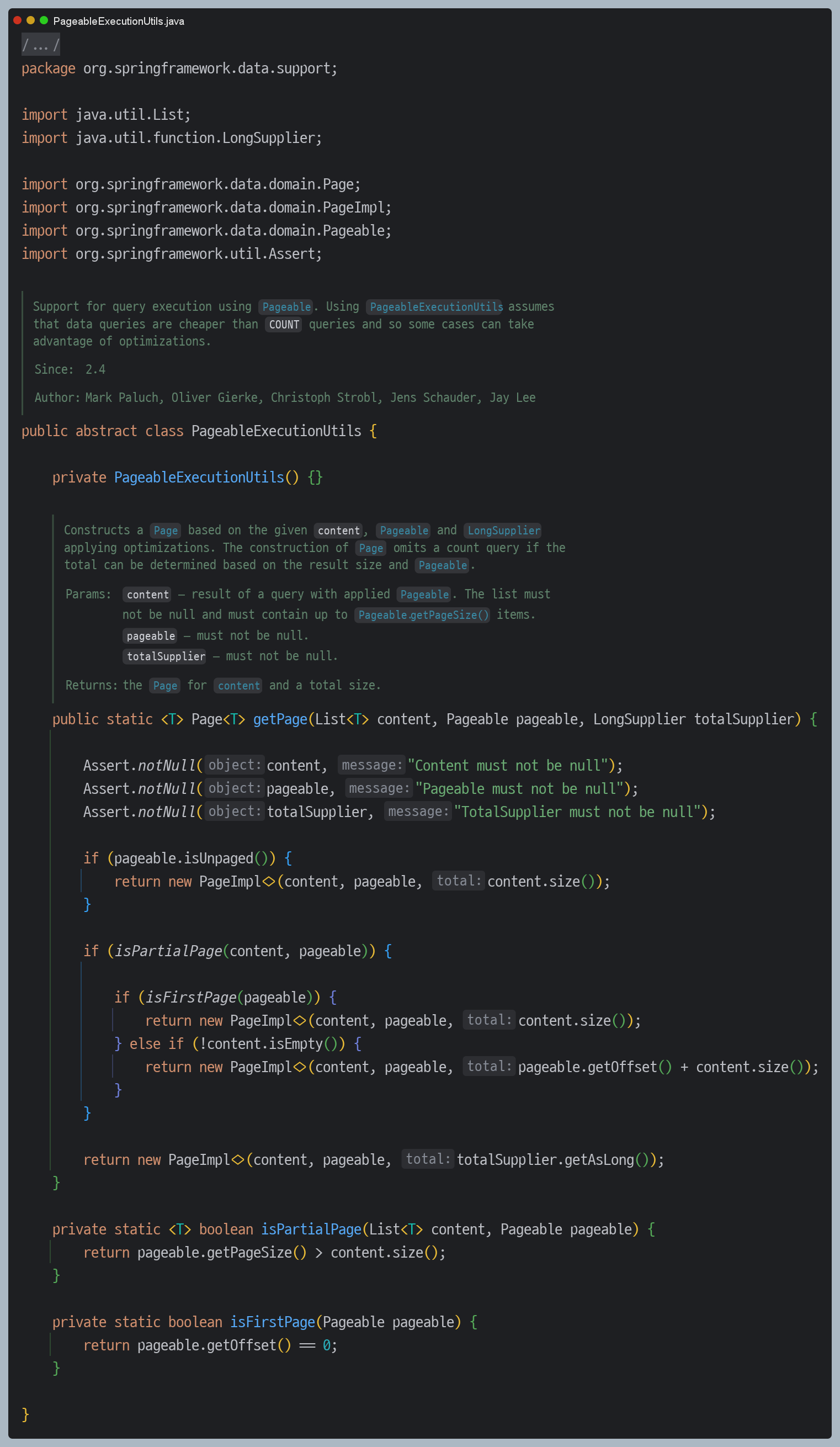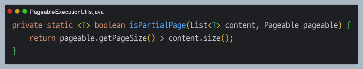 먼저 `PageableExecutionUtils` 클래스 내부 코드를 살펴보았습니다.
