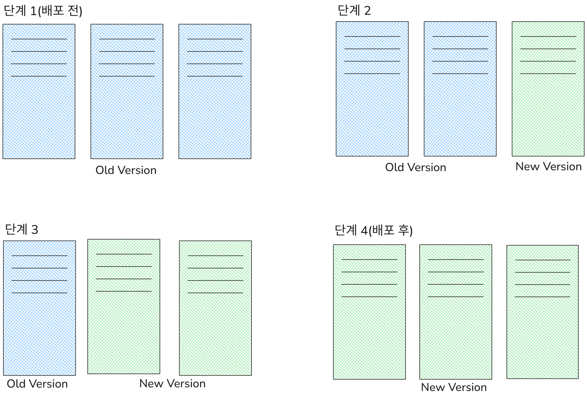 - 배포가 진행되는 동안 구버전과 신버전이 공존하기 때문에 호환성 문제가 발생할 수 있다.