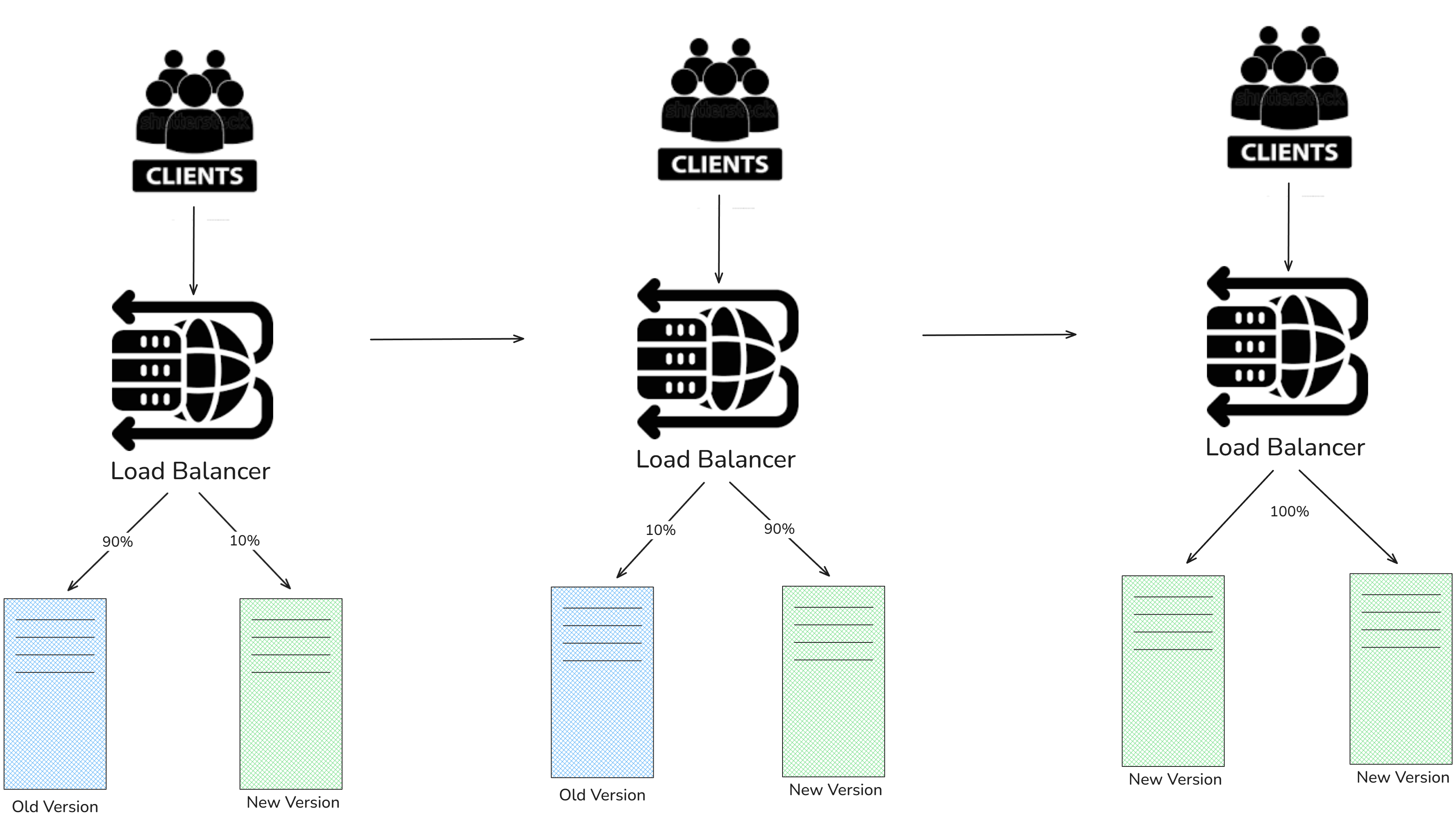 - 신버전의 배포 전에 실제 운영 환경에서 미리 테스트한다는 점이 블루-그린 배포와 비슷하지만, 카나리 배포는 단계적인 전환 방식을 통해 부정적 영향을 최소화하고 상황에 따라 트래픽 양을 늘리거나 롤백할 수 있다.