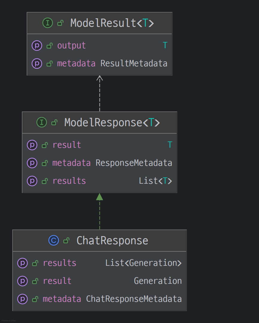 `ChatModel` 인터페이스의 구현체는 `ChatResponse`라는 공통 응답 객체를 반환합니다.