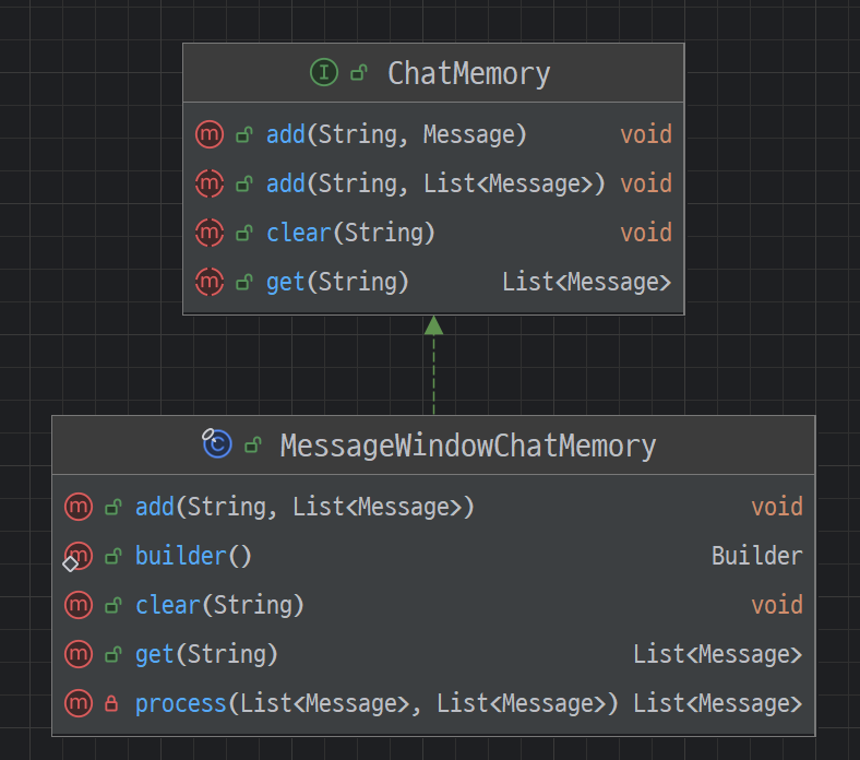 💡 빌더를 통해 `MessageWindowChatMemory`를 생성할 때 `ChatMemoryRepository`를 지정하지 않으면 `InMemoryChatMemoryRepository` 구현체가 기본으로 정해집니다.