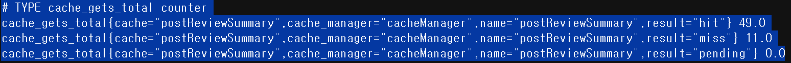 💡캐싱 메트릭을 확인하기 위해서 `RedisCacheManager` 수동 빈 등록 대신(했다면) 다음과 같은 설정이 필요했습니다.